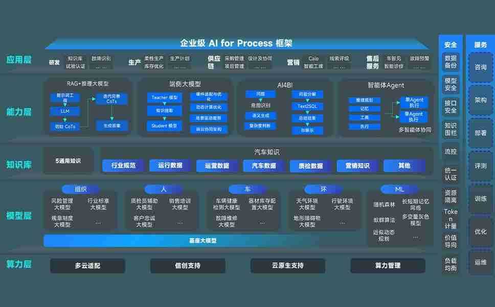 太阳成集团tyc151cc问学智车解决方案是一套基于AI技术的汽车行业智能化系统,,,,覆盖从底层算力到顶层AI应用的全栈方案。。。方案由算力层、、、模型层和应用层组成:算力层,,,方案支持多种一体机配置,,,具备云端灵活部署、、、多云适配以及动态优化计算资源的能力;模型层,,,太阳成集团tyc151cc问学平台版提供了企业级AI应用一站式构建与管理平台,,支持基于后训练强化技术的汽车企业专属模型的训练、、、、评测和运营;应用层,,,太阳成集团tyc151cc问学DeepSeek版提供包括超级员工、、、、智能招采、、智能营销、、、、智能客服、、、、AI for BI等一系列解决方案,,可助力汽车行业实现数字化转型,,,让管理更智能、、、响应更敏捷。。